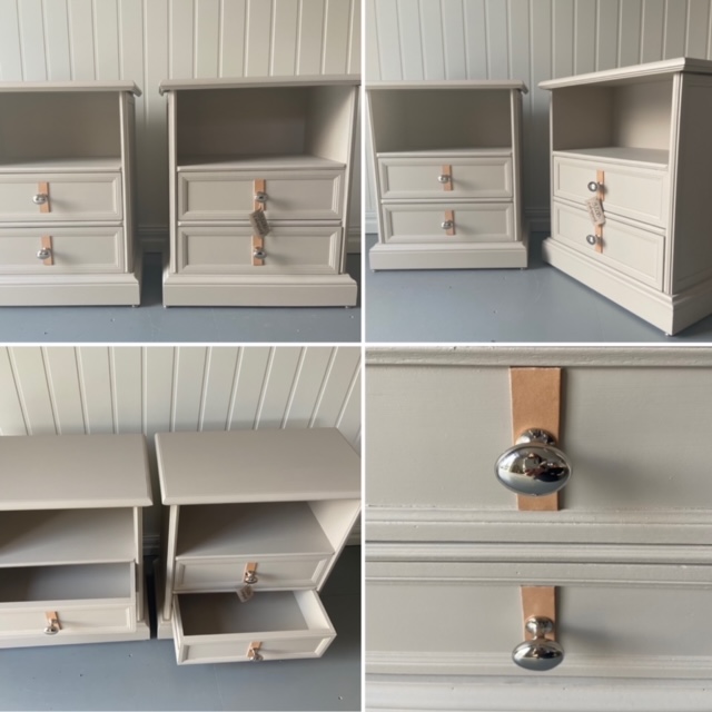 När du köper en möbel av mig får du en unik möbel, en redesignad äldre möbel. Ju mer massivt trä desto bättre. Innan leverans är de rengjorda, lagade, spacklade och alla funktioner har setts över. De har därefter målats för hand och torkat i omgångar. Som avslut har de, efter vad de behövt, utrustats med nya beslag och detaljer.